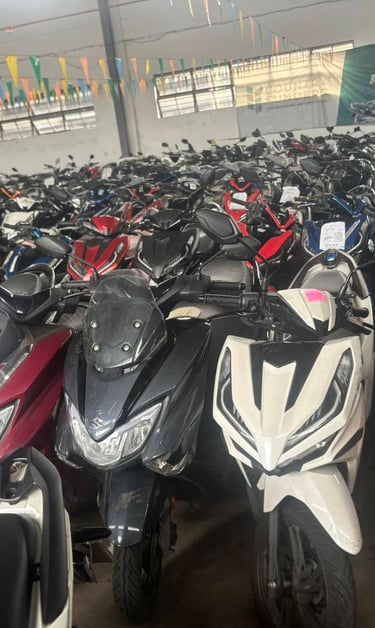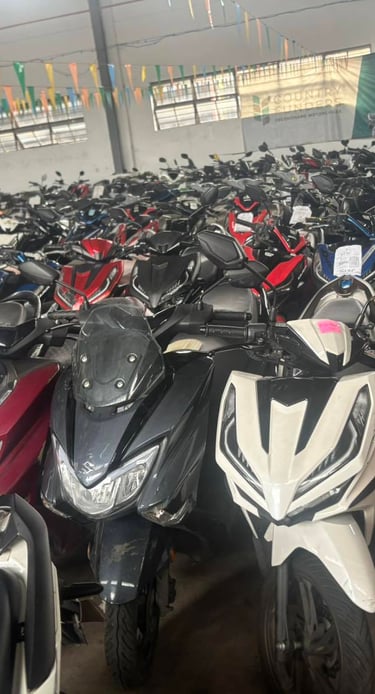 Is a motorcycle that has been taken back by a lender (like a bank or financing company) due to the borrower's failure to make payments or meet other loan obligations as outlined in the financing agreement.